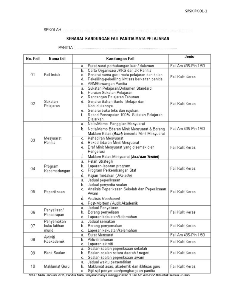 Rujuk fail di pejabat 17. Pelan pembangunan profesional 1 antara kandungan yang terdapat dalam fail ini ialah: Please fill this form, we will try to respond as soon as possible. Sistem fail yang berkesan sangat penting untuk rujukan di masa hadapan dan juga pemantauan oleh pihak yang berkenaan. Carta organisasi jkks dan jk panitia c. Pengurusan fail panitia senarai kandungan fail panitia mp3 & mp4. Manual prosedur kerja dan fail meja yang didokumenkan merupakan panduan kerja dan manual rujukan. Ia juga membantu memudahkan pengesanan dokumen apabila diperlukan. Link untuk mengakses fail panitia yang disediakan: Fail ini lebih kepada pengurusan dan perancangan. We are a sharing community. Antara bahagian yang perlu ada dalam fail panitia mata pelajaran adalah So please help us by uploading 1 new document or like us to download