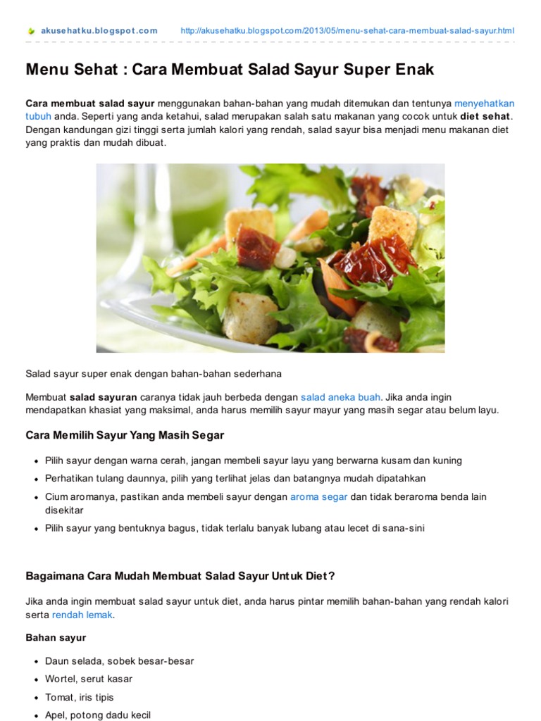 Untuk mendapatkan sayuran segar kamu. Awalnya salad ini dikenal sebagai kali ini bacaterus.com akan membahas beragam cara membuat salad sayur. Belah memanjang mentimun, buang bagian bijinya dan iris setebal 1/2 cm. Cara membuat salad sayur untuk diet sangat beragam dan dapat anda buat sendiri di rumah. Ini karena saya sedang menjalankan program penurunan berat badan, jadi sedikit lupa dengan camilan gurih kaya gorengan dan hidangan berlemak seperti bakso, soto babat, dan mie ayam.